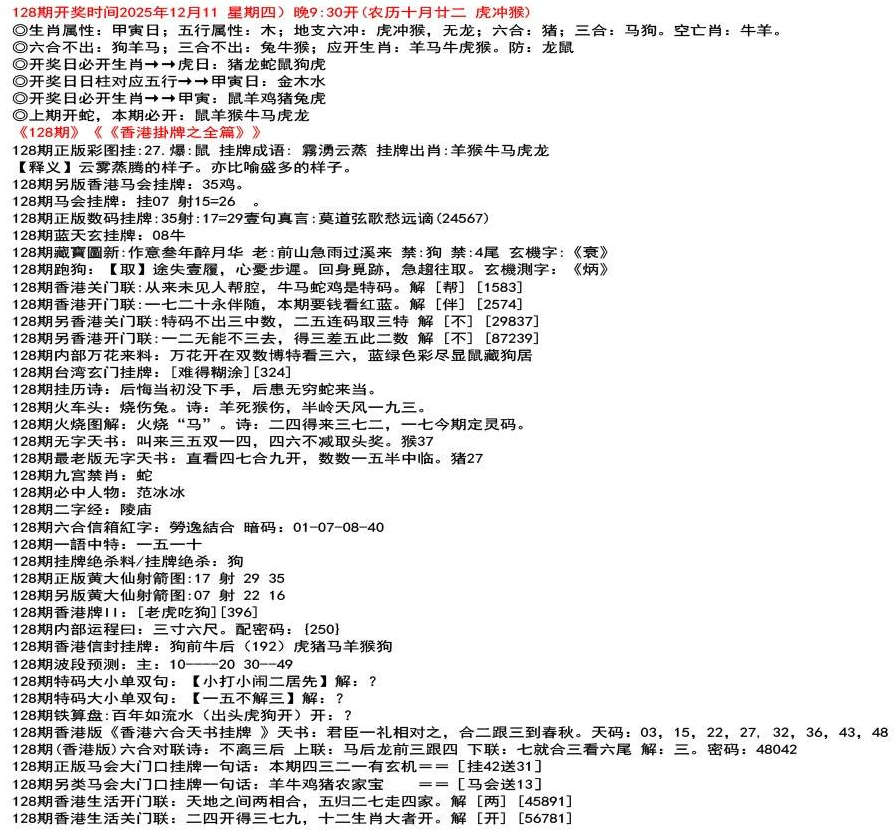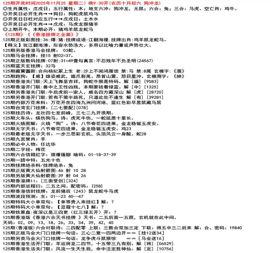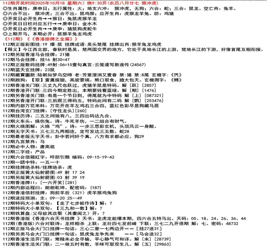 111期香港牌II:【天干之将】【179】