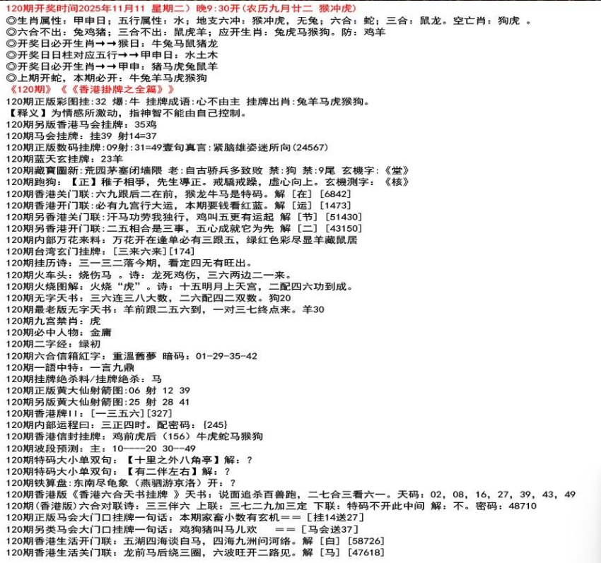 111期香港生活关门联:鸡前马后来一数,猴儿三心到娘家 解 【来】【38726】